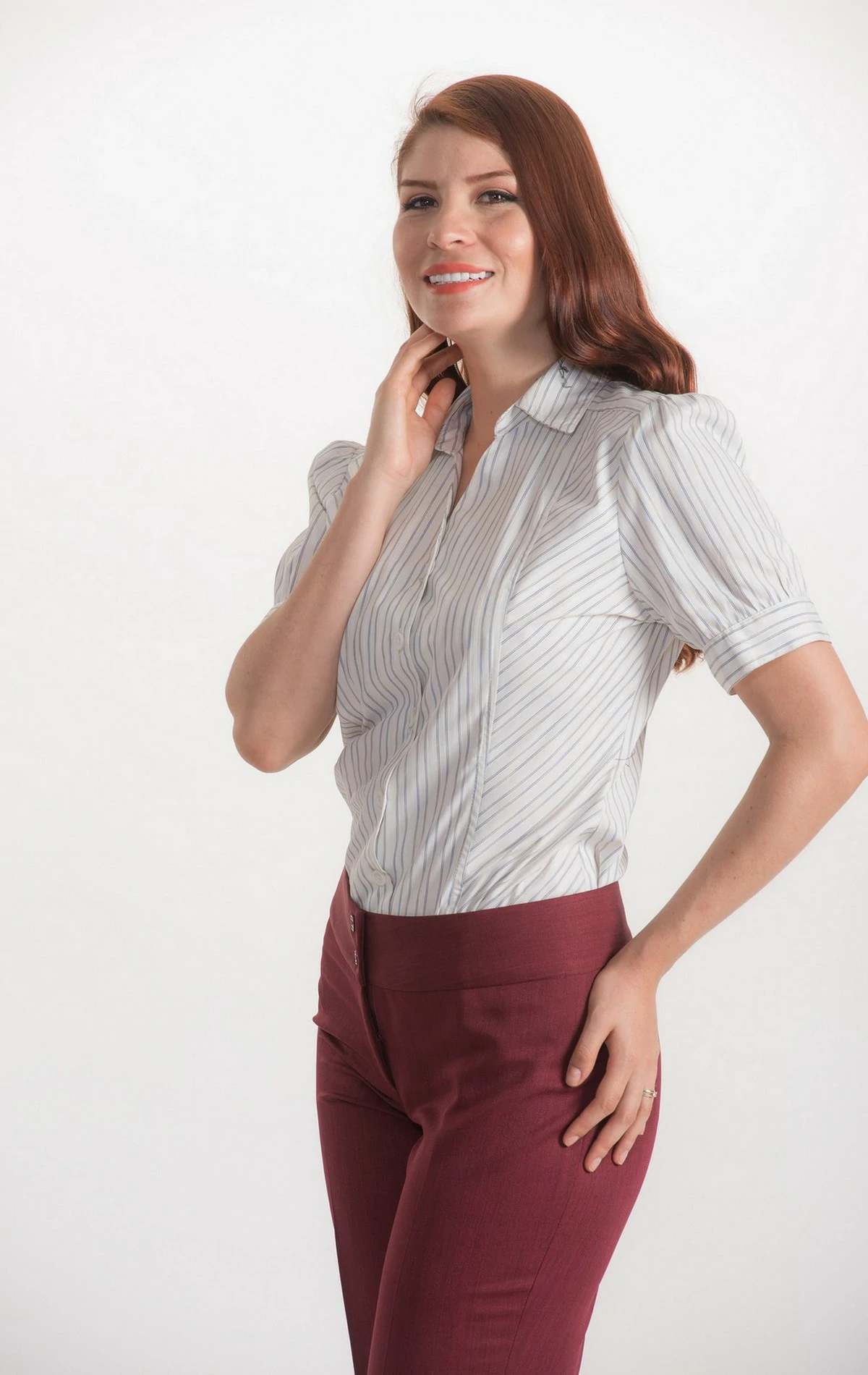-Blusa modelo 581, estampada, a rayas, color blanco