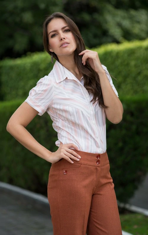 -Blusa modelo 613, estampada, a rayas, color salmon