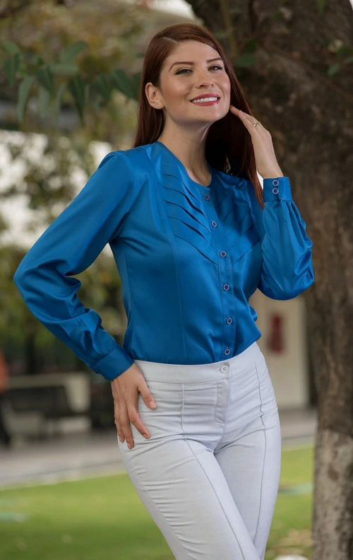 -Blusa modelo 551-CR, color azul rey