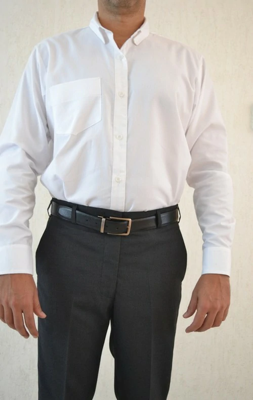 -Camisa cuello sport, reducido, pespunteado. Bolsa frontal. Tela poliester/algodon.